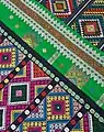 Argons with 'bugri phul' (black) and 'chiwar phul' (green) motif along the borders.