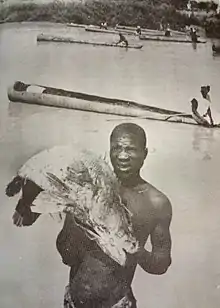 In the 2020 Argungu Fishing Festival, the individual who caught the biggest fish weighing about 78 kilograms was awarded N10 million, two new cars and two Hajj seats, second position, and third positions were also awarded.[10] Over 50,000 fishermen participated in the annual festival held in Kebbi State and the winners were graded based on the weight of the fish caught.[11] The President of Nigeria, Muhammadu Buhari visited the 2020 Argungu Fishing Festival[12][13][14] The festival in 2020 was the 60th edition after 10 years of being on hold according to the governor of the state Abubakar Bagudu.[15][16]