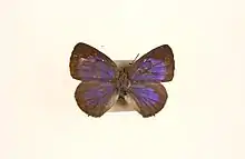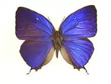 Arhopala is a very large genus of gossamer-winged butterflies (Lycaenidae). They are the type genus of the tribe Arhopalini. In the relatively wide circumscription used here, it contains over 200 species collectively known as oakblues. They occur from Japan throughout temperate to tropical Asia south and east of the Himalayas to Australia and the Solomon Islands of Melanesia. Like many of their relatives, their caterpillars are attended and protected by ants (myrmecophily). Sexual dichromatism is often prominent in adult oakblues.[1]