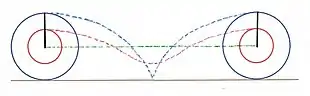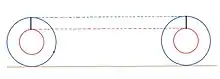 In an alternative version of the problem, the smaller circle, rather than the larger one, is in contact with the horizontal surface. Examples include a typical train wheel, which has a flange, or a barbell straddling a bench. American educator and philosopher, Israel Drabkin, called these Case II versions of the paradox,[1] and a similar, but unidentical, analysis applies.