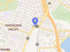 Arleta station is a light rail station on the Muni Metro T Third Street line in the Visitacion Valley neighborhood of San Francisco, California on the south slope of Candlestick Hill. The station opened with the T Third Street line on January 13, 2007. It has a single island platform located in the median of Bayshore Boulevard between Arleta Avenue and Blanken Avenue, with access from crosswalks at both streets. The station is the closest Muni Metro stop to the Caltrain station at Bayshore station, which is 0.4 miles (0.64 km) to the south.