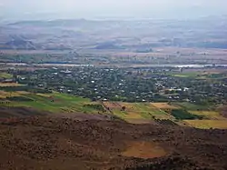 listen)), is a province (marz) in the western part of Armenia. Located in the Ararat plain dominated by Mount Ararat from the south and Mount Aragats from the north, the province's capital is the town of Armavir while the largest city is Vagharshapat (Etchmiadzin). The province shares a 72 km (45 mi)-long border with Turkey to the south and west.
