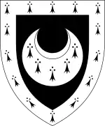 Escutcheon: Chevronny Or and Gules on a chief Sable five goutties three and two Argent. [39] |