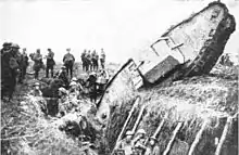 The roots of the modern AVLB can be found in World War I, at the dawn of tank warfare. Having developed tanks, the United Kingdom and France were confronted with the problem of mounting tank advances in the face of the trenches that dominated the battlefields. Early engagements, such as at Cambrai demonstrated the tank's utility, but also highlighted its vulnerability to battlefield geography—many early tanks found themselves ignominiously stuck in the trenches, having insufficiently long tracks to cross them (as at right). To counter this disadvantage, tanks (especially the common British Heavy tanks) began to go into battle with fascines, sometimes as simple as a bundle of heavy sticks, carried on top. By dropping these into the trenches, they were able to create a wedge over which the tank could drive. Later, some tanks began to carry rails on their decks—the first AVLBs.