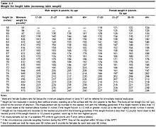 - Table 3-1 Weight for height table (screening table weight), Washington, DC: Headquarters, Department of the Army, 27 November 2006