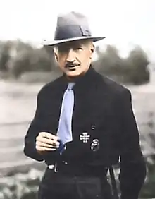 ![]() Somersalo dressed in IKL party uniform. He is wearing the Iron Cross, awarded during his service in the Imperial German Army. | |