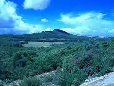 This group is oriented east-northeast to west-southwest, covering an area of about 35 kilometres (22 mi) long and 6 kilometres (3.7 mi) wide, and reaching 501 metres (1,644 ft) at its highest altitude as a result of the Formosinho anticline.[5][6] Arrábida was formed from four successive phases of rifting that resulted in the fragmentation of Laurasia and the formation of the north Atlantic. This area is unique in the Atlantic for demonstrating the western propagation of the Tethys sea and the formation of the Mediterranean, caused by the collision of the African plate and the Eurasian plate, during the Late Cretaceous. Geologically, the mountainous region was created during the Jurassic and Miocene epochs, while the plains formed during the Pliocene and Quaternary periods.[7] Ribeiro (1935) indicates that the massif began to be formed with successive movements during the Tertiary era.[7]