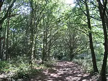 Trees include the uncommon wild service tree, and breeding birds include spotted flycatcher, lesser whitethroat, reed bunting and skylark.[2] Featherstone Hill is a partly wooded hill in the south west of the site.