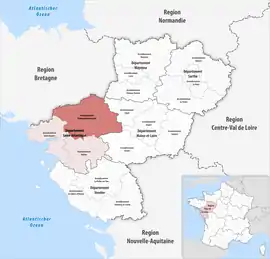 The arrondissement of Châteaubriant-Ancenis is an arrondissement of France in the Loire-Atlantique department in the Pays de la Loire region. It has 76 communes.[2] Its population is 222,436 (2016), and its area is 3,157.6 km2 (1,219.2 sq mi).[3]