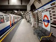 The suffix was dropped from the station's name some time around 1960, giving the current name of Arsenal.[lower-alpha 2] The original tiled walls of the platforms still bear the Gillespie Road name, spelt out in large letters.[15] In 2007, the station underwent a major upgrade;[16] as part of this the wall tiling was completely restored, the floor resurfaced and an electronic Tannoy system was introduced.[17]