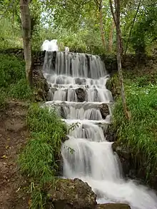 There are two water falls which are frequented by visitors seeking holy blessings, magical and spiritual powers. The area around the falls is adorned with prayer flags and wish rags; one was frequented by a holy woman.[4]