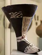 | Left to right: rhyton found at Karmir Blur.[9] Rhyton shaped as the neck of an animal, found near the city of Van, stored in the Archaeological Museum of Istanbul. Glazed ritual vessel featuring bulls.[14] | ||