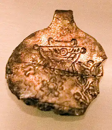 Contrary to expectations, very few stone reliefs and sculptures were found during excavations,[16] although the reliefs of the Assyrian king Sargon II depicting the Urartian city of Musasir clearly show large statues.[1] Only a few minor remnants of stone reliefs were discovered in Turkey: the rest were likely destroyed after the fall of Urartu. However, pottery items were found in large numbers.[17]