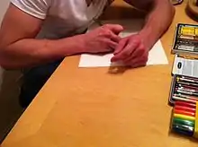 The term containment, within art therapy and other therapeutic settings, has been used to describe what the client can experience within the safety and privacy of a trusting relationship between client and counselor.[57][58] This term has also been equated, within art therapy research, with the holding or confining of an issue within the boundaries of visual expression, like a border or the circumference of a mandala.[59] The creation of mandalas for symptom regulation is not a new approach within the field of art therapy, and numerous studies have been conducted in order to assess their efficacy.[60][61]