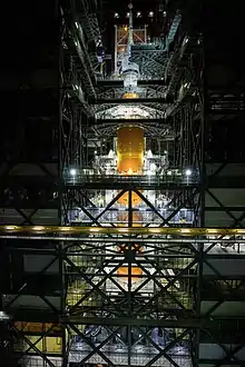 This article incorporates text from this source, which is in the public domain. - Sloss, Philip (11 June 2021). "EGS starts Artemis 1 SLS Core Stage lift". NASASpaceFlight.com. Retrieved 23 June 2021.