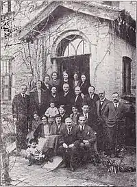 Second row: Mr and Mrs Burdett, Miss Curtis, Mr Arthur and Mrs Maud Shorrock, Dr Clement Stockley, Mr Watson and Mr Mudd
