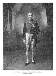 Arthur Lawley, 6th Baron Wenlock, GCSI, GCIE, KCMG (12 November 1860 – 14 June 1932) was a British colonial administrator who served variously as Administrator of Matabeleland, Governor of Western Australia, Lieutenant-Governor of the Transvaal, and Governor of Madras. The fourth and youngest son of the 2nd Baron Wenlock, he attended Eton College and Trinity College, Cambridge, before joining the military. Serving in the Mahdist War, he reached the rank of captain before resigning his commission to pursue other interests. Lawley was then private secretary to his uncle, the 1st Duke of Westminster, and subsequently to the 4th Earl Grey, who he followed to Rhodesia.