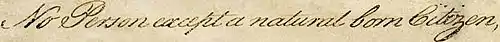 No Person except a natural born Citizen, or a Citizen of the United States, at the time of the Adoption of this Constitution, shall be eligible to the Office of President; neither shall any person be eligible to that Office who shall not have attained to the Age of thirty five Years, and been fourteen Years a Resident within the United States.