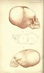 the same formation [i.e. absence of the signs of artificial pressure] of the head presents itself in children yet unborn; and of this truth we have had convincing proof in the sight of a foetus, enclosed in the womb of a mummy of a pregnant woman, which we found in a cave of Huichay, two leagues from Tarma, and which is, at this moment, in our collection. Professor D'Outrepont, of great Celebrity in the department of obstetrics, has assured us that the foetus is one of seven months' age. It belongs, according to a very clearly defined formation of the cranium, to the tribe of the Huancas. We present the reader with a drawing of this conclusive and interesting proof in opposition to the advocates of mechanical action as the sole and exclusive cause of the phrenological form of the Peruvian race.[36]