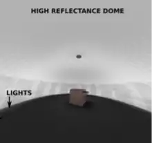The reflecting dome sky simulator is formed with a reflective opaque dome surface to reproduce uniform and non-uniform skies. The lighting system on the interior of the dome is formed to stimulate sky distributions that are different from a standard overcast sky. The artificial dome uses a reflective surface to illuminate sky distributions and evaluate daylighting on scale models placed on a rotatable tabletop. Also, it can be integrated with the artificial sun to replicate sunlight. Compared to mirror boxes, reflecting dome skies are more adjustable in utilization and their variants are widely available in the market.[10]