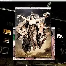The album art depicts a personal computer desktop with two windows open, both displaying images. The 1886 painting "The Night Escorted by the Geniuses of Love and Study" by Pedro Américo is foregrounded, but clearly obscures a presumably pornographic image of a reclining figure clad in nylons and little if anything else. The back cover is similar, with what appears to be the same image this time obscured by both the tracklisting (in a bespoke Microsoft Word) and Lorenzo Costa's "The Reign of Comus".