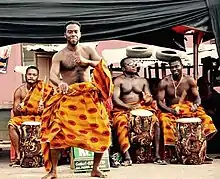 Ashanti culture celebrates Adae, Adae Kese, Akwasidae, Awukudae and Ashanti Yam festival.[25] The Seperewa, a 10-14 stringed harp-lute, as well as the Fontomfrom drums, are two of the typifying instruments associated with the Ashanti as well as the Ashanti Kente clothing.[26]