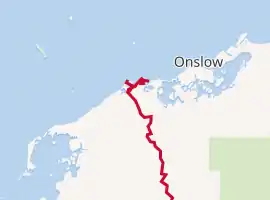 The township of Onslow was located at the mouth of the Ashburton River where a jetty was used as the town's and region's port, but once the new deep water port facility was completed at Beadon point 15 kilometres (9.3 mi) north of the old townsite, the townsite was moved.[8]