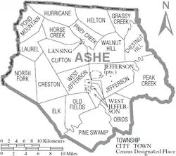 - "Ashe County NC - Cities, Towns, Neighborhoods, & Subdivisions". northcarolina.hometownlocator.com. Retrieved May 2, 2022.