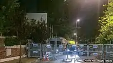 Turkish authorities have claimed that security camera footage of the day of the incident was removed from the consulate and that Turkish consulate staff were abruptly told to take a holiday on the day Khashoggi disappeared while inside the building.[76] Turkish police investigators told the media that the recordings from the security cameras did not show any evidence of Khashoggi leaving the consulate.[77] A security camera was located outside the consulate's front which showed him entering but not leaving, while another camera installed at a preschool opposite the rear entrance of the consulate also did not show him leaving.[77]