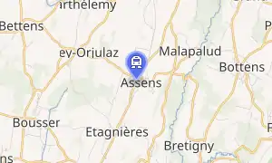 Assens railway station (French: Gare de Assens) is a railway station in the municipality of Assens, in the Swiss canton of Vaud. It is located on the 1,000 mm (3 ft 3+3⁄8 in) Lausanne–Bercher line of the Chemin de fer Lausanne-Échallens-Bercher (LEB).[1]