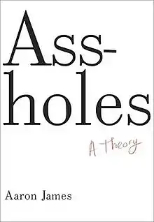 Assholes: A Theory is a 2012 non-fiction book by Aaron James. An associate professor of philosophy at the University of California, Irvine, James attempts a precise academic definition of the term.[1] According to James, an asshole "allows himself to enjoy special advantages in social relations out of an entrenched sense of entitlement that immunizes him against the complaints of other people."[2] As Martin Patriquin writes in Maclean's, the author "spends 214 quite convincing pages arguing that “assholeness” is less inattention than a permanent state of mind [...]"[3] Seekers of philosophical meaning will find much to ponder with James, concludes Alex Balk in Slate.[4]