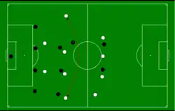 - Swapping of the wing men: Sometimes, a team with two flexible (position wise) wide men will allow them to interchange as the game progresses. The aim of this is to confuse the defenders who are assigned to mark them, thus maybe leading to opportunities as the defender tries to find their man in set pieces (corners, free kicks etc., where the man may be in a totally different position and thus evade his grasp). Also, if the wingers are different types of player (one favouring crossing from deep positions whilst the other is prone to trying to dribble past their marker for example), then it might be to exploit a weakness in the opposing defender.
