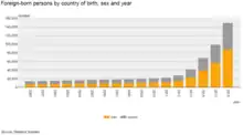 - "Foreign citizens by country of citizenship, sex and year". Statistics Sweden. Retrieved 15 November 2017.