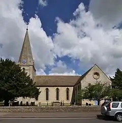 The Church of England parish church of Saint James was built in 1839[4] with only a low squat tower and one bell. Later a spire and second bell were added. The Gothic Revival architect Joseph Clarke restored the building in 1862,[4] even though it was only 23 years old at the time. The architect HGW Drinkwater made further alterations in 1885–89.[4] The present ring of six bells was cast by John Taylor & Co. of Loughborough in 1883, the two original bells being taken in part exchange. Two brass plates in the church commemorate the names of local clergy and churchwardens at the time of the bells' dedication and benefactors who contributed to the cost, the balance of which was raised by public subscription. In 1992 the bells were restored and re-hung by White's of Appleton following two years of local fund-raising. In 1857 Aston, Cote and Shifford were made part of the ecclesiastical parish of Bampton Aston. It now forms part of the benefice of Bampton with Clanfield,[3] which also includes the parish of Lew.[5]