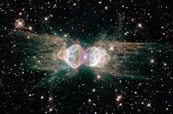 Ultraviolet astronomy employs ultraviolet wavelengths between approximately 100 and 3200 Å (10 to 320 nm).[47] Light at those wavelengths is absorbed by the Earth's atmosphere, requiring observations at these wavelengths to be performed from the upper atmosphere or from space. Ultraviolet astronomy is best suited to the study of thermal radiation and spectral emission lines from hot blue stars (OB stars) that are very bright in this wave band. This includes the blue stars in other galaxies, which have been the targets of several ultraviolet surveys. Other objects commonly observed in ultraviolet light include planetary nebulae, supernova remnants, and active galactic nuclei.[47] However, as ultraviolet light is easily absorbed by interstellar dust, an adjustment of ultraviolet measurements is necessary.[47]
