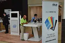 On 9 March 2006, Asus was confirmed as one of the manufacturers of the first Microsoft Origami models, together with Samsung and Founder Technology.[18] On 8 August 2006, Asus announced a joint venture with Gigabyte Technology.[19] On 5 June 2007, Asus announced the launch of the Eee PC at COMPUTEX Taipei. On 9 September 2007, Asus indicated support for Blu-ray, announcing the release of a BD-ROM/DVD writer PC drive, BC-1205PT.[20] ASUS subsequently released several Blu-ray based notebooks.