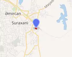 Surakhany is located on the Absheron peninsula, which is famous for being a locality where oil oozes naturally from the ground and flames burn perpetually — as at Yanar Dag — fed by natural hydrocarbon vapours issuing from the rock.[9]