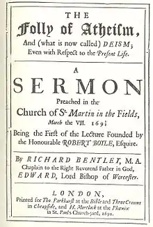 Atheism, as defined by the entry in Diderot and d'Alembert's Encyclopédie, is "the opinion of those who deny the existence of a God in the world. The simple ignorance of God doesn't constitute atheism. To be charged with the odious title of atheism one must have the notion of God and reject it."[1] In the period of the Enlightenment, avowed and open atheism was made possible by the advance of religious toleration, but was also far from encouraged.