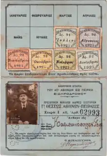 In 1926 the SAP S.A. was bought by the Power and Traction Finance Ltd and renamed Ellinikoi Ilektrikoi Sidirodromoi (E.I.S., Greek: Ελληνικοί Ηλεκτρικοί Σιδηρόδρόμοι or Greek: Ε.Η.Σ., translated as Hellenic Electric Railways).[1] In 1926 the sister company Ilektriki Etaireia Metaforon or H.E.M., also part of Power Group, took over the 1,000 mm (3 ft 3+3⁄8 in) metre gauge Lavrion Square-Strofyli railway. This line was eventually converted to standard gauge, double track and became an extension of the existing line, reaching Attiki in 1948 and Kifissia in 1958.