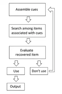 Simplified diagram of the steps involved in retrieving an item from the long-term store under the SAM model. Simplification of the diagram found in Raaijmakers & Shiffrin, 1981.[4]