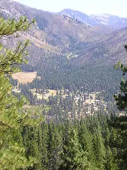 Idaho City is approximately 35 miles (55 km) due west, as the crow flies. Galena Summit on State Highway 75 is about 25 air miles (40 km) to the east-northeast.