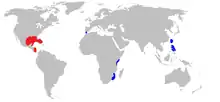 | Distribution of Hexanchus vitulus (red) and Hexanchus nakamurai (blue) | |