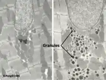 Atrial natriuretic peptide (ANP) or atrial natriuretic factor (ANF) is a natriuretic peptide hormone secreted from the cardiac atria that in humans is encoded by the NPPA gene.[1] Natriuretic peptides (ANP, BNP, and CNP) are a family of hormone/paracrine factors that are structurally related.[2] The main function of ANP is causing a reduction in expanded extracellular fluid (ECF) volume by increasing renal sodium excretion. ANP is synthesized and secreted by cardiac muscle cells in the walls of the atria in the heart. These cells contain volume receptors which respond to increased stretching of the atrial wall due to increased atrial blood volume.