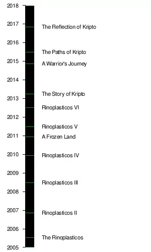 | The Rinoplasticos | Rinoplasticos II | Rinoplasticos III | Rinoplasticos IV | Rinoplasticos V | Rinoplasticos VI | A Frozen Land | The Story of Kripto | A Warrior's Journey | The Paths of Kripto | The Reflection of Kripto | ||