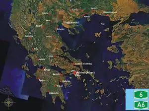 Attiki Odos (Greek: Αττική Οδός) is a privately owned toll motorway system in Greece. The Attiki Odos motorways form the outer beltways of the Athens-Piraeus metropolitan area. The total length of the motorways is 65 kilometres (40 mi). The Attiki Odos system consists of the following motorways: