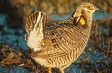 Attwater's prairie chicken (Tympanuchus cupido attwateri) is a highly endangered subspecies of the greater prairie chicken that is native to coastal Texas and Louisiana in the United States.[3]