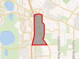 Situated on the Swan coastal plain, between the coast, and the Darling Scarp, the terrain is generally flat, with many small natural and created wetlands. It is situated on the western boundary of the Jandakot ground water protection area, and hence suburban development to the east is not permitted. It is bounded to the north by Armadale Road, the Kwinana Freeway to the west, Tapper Road to the east and to the south by Gibbs Road.