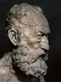 Suter's naturalistic work is dominated by male and female nudes, figure compositions, portrait busts and architectural sculpture. In 1925 Ludwig Marcuse called him “the most important sculptor of our time”.[8] At first he was influenced by Rodin and Bourdelle, but turned to Maillol's classicism in the fourth decade of his life.[9] Art historian Gotthard Jedlicka points out an important difference to Rodin: "where Rodin seizes impetuously, he waits calmly, and everytime he imbeds the unique rhythm of a particular life into the specific rhythm of his composition".[7] Frank Budgen wrote in his Memoir, Myselves when Young: "He excelled in portraiture. His work in that field was sensitive, forthright and masculine, occasionally leaning towards the baroque, yet always saved by a sense of measure from falling into expressionist caricature. I have often thought when walking through the gallery of Roman portraits in the British Museum that the artists who made them were Suter's far-off forebears."[10] Suters most famous sculpture is the memorial “Prometheus and the Soul” for the Swiss Nobel Prize poet Carl Spitteler at Liestal near Basel, which he worked on from 1926 to 1931.
