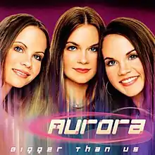 Aurora was an American Christian girl group that was made up of sisters Lauren, Racquel and Rachel Smith from Georgia.[1] The sisters all played instruments, and wrote songs. The group released two major albums with labels Pamplin and Red Hill Records. Aurora in 2000 and Bigger than Us in 2001, and released singles "Mercy Me", “Bigger than Us”, and "Outta My Head", on both US and UK radio.