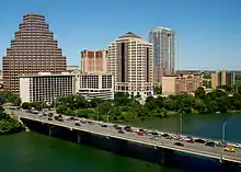 Austin's skyline historically was modest, dominated by the Texas State Capitol and the University of Texas Main Building. However, since the 2000s, many new high-rise towers have been constructed.[71] Austin is currently undergoing a skyscraper boom, which includes recent construction on new office, hotel and residential buildings. Downtown's buildings are somewhat spread out, partly due to a set of zoning restrictions that preserve the view of the Texas State Capitol from various locations around Austin, known as the Capitol View Corridors.[72]